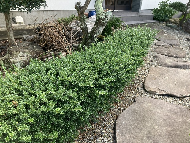 豆ツゲは丸や四角に刈り込まれてこそ。