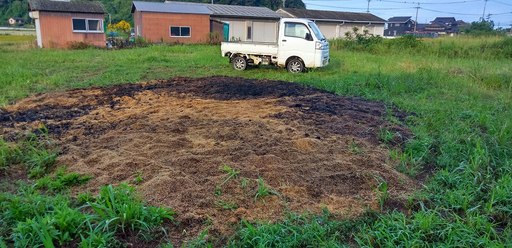 あわてて300Lタンクで3回川から水を汲んで エンジンポンプでモミにかけて火を消した。 前日は雨が降ったので安心していた。 雨が降っても燻炭の火は消えないそうだ。