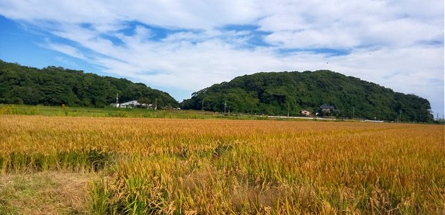 お地蔵さん下の田んぼから開始。 川の手前やソーラーの前など5枚も刈った。