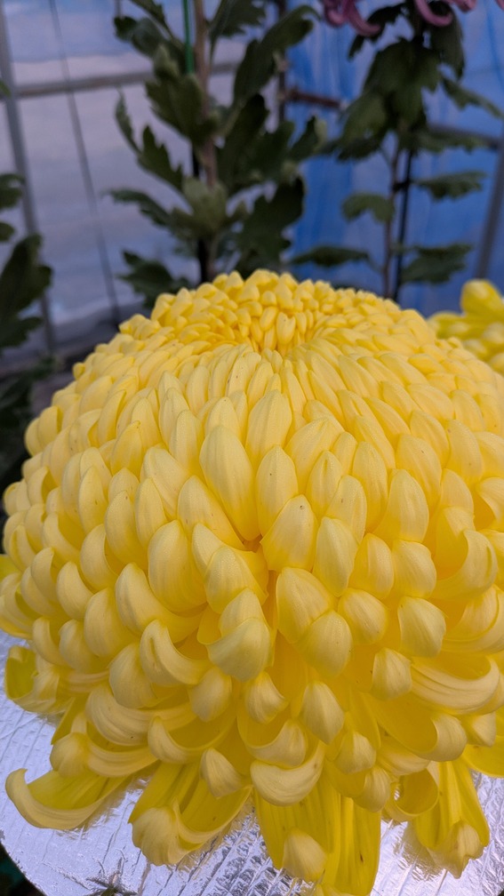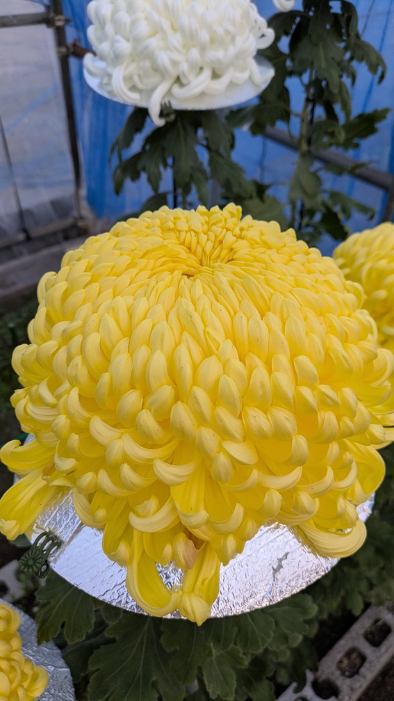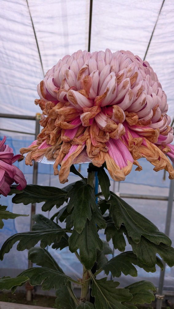 晴れハウス中の後片付けは気が乗らない。まだ満開になっていない普及花から切り落とす。5日ぶりに地植えを見に行くと金山が良く咲いている。鉢栽培に比べて弁質、色彩が違う。晴舞台は輪径が出たが花弁が腐ってしまった。来年は金山だけ作ってみようかな。