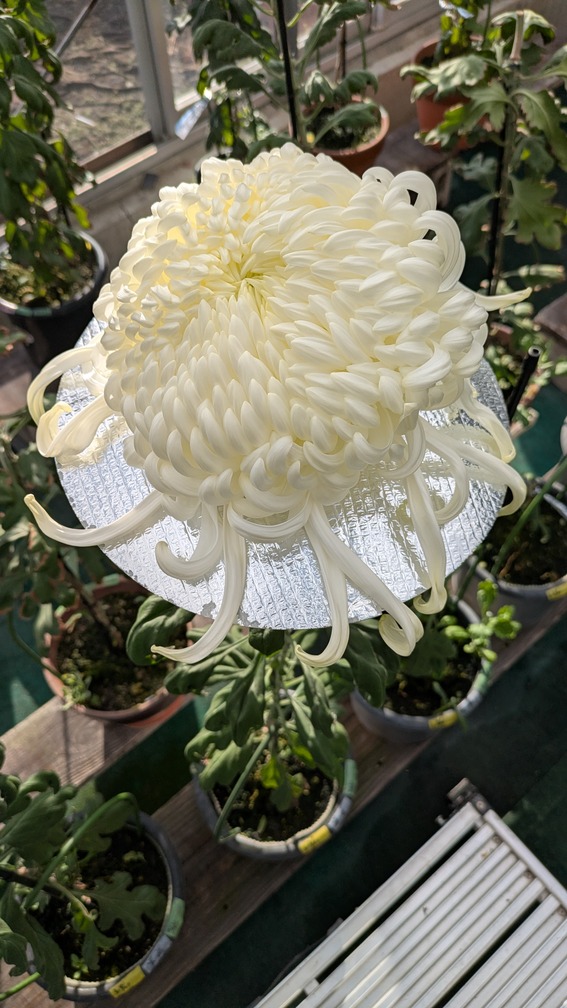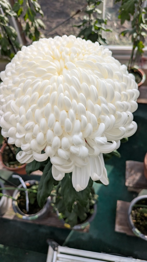 晴れ 古花の中で来年廃棄する候補を決める。 今年は7本立、3本立を沢山作ったので本業の1本立が例年よりも少なくした。 それでもハウスの3/4をぎっしり使って栽培した。 金山等は14鉢も並べた。 結果南側は車庫の影響で日当たりが悪く輪径が出なかった。 来年は鉢数を減らし日当たりの良い場所(ハウスの半分程度)だけにしょう。