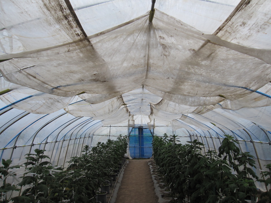 (1) 鉢植、地植えの理想の蕾の日焼けを防ぐためラブシートを張りました