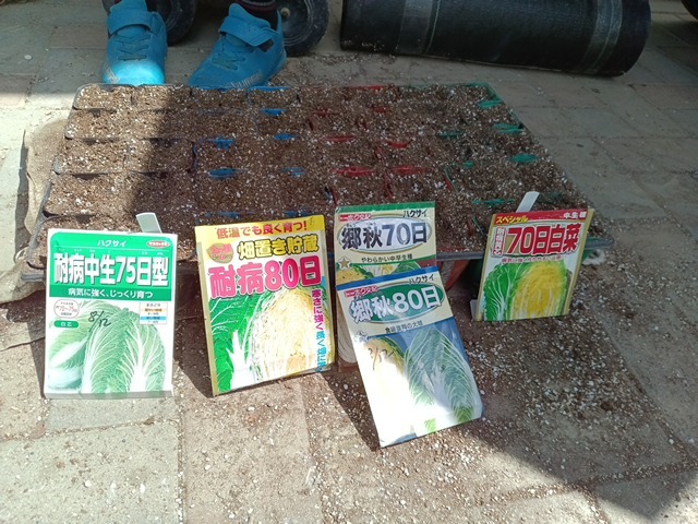 千葉からきてる孫達が、白菜の種蒔きお手伝い。