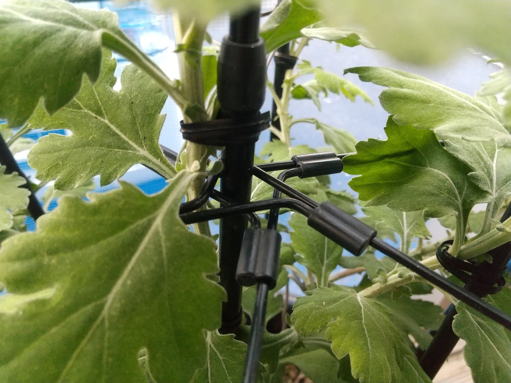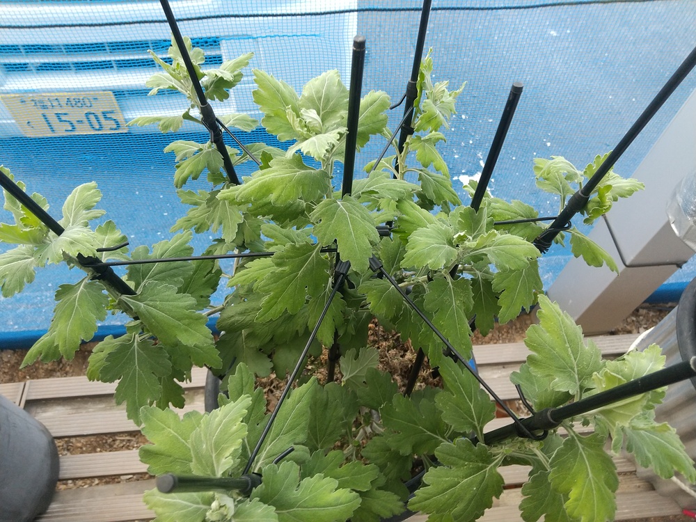 昨日のはまちゃんの写真で発見。3本仕立て用インバイド2個でこんな利用方法もあるんだ。早速、やってみました。利用対象鉢は品種保存用の精興大臣。ミニ7本仕立て自宅鑑賞用。今は生育に伴う作業よりこんなことしてるほうが楽しいです。今日は学校勤務だ。