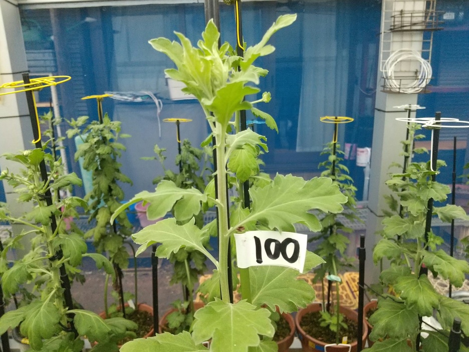 あと何センチ、あと何センチ、、、毎日のように測ってます。 だるまや福助を作っていた頃は伸びないで、伸びないでと思いながら測ってました。 今年は、伸びろ、伸びろと思って測ってます。 国華園の単鉢盆養の規定のひとつに天の花頂が105cm以上となってます。 参ったな! 今年は不調なので伸びてない。 厚物なんてまだ100cmにも満たない。 こんな年は初めて。 「なにしたんだ?」って言われそう。 厚物を諦め、切り花用の管物に目を向けてます。 咲くか咲かないよりもとにかく、数を用意しなければ、、、、 5鉢のノルマでしたが、3鉢で勘弁してもらいました。 もう、減らせない。 伸びてくれ。