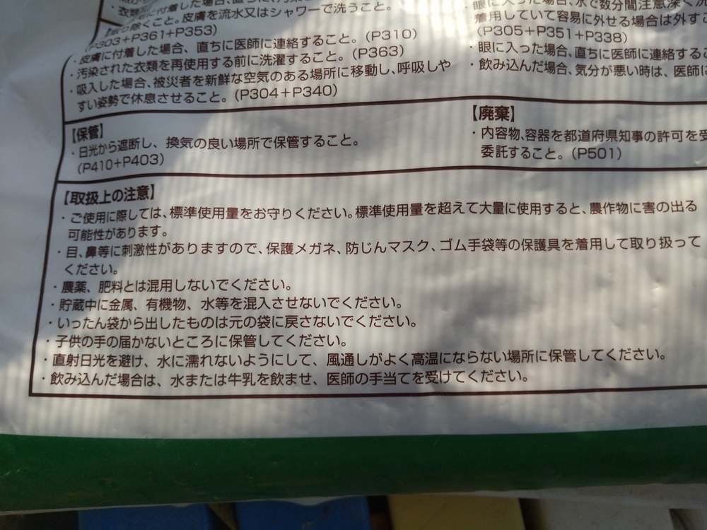 (2) 大量に使うと害がでるとか。 農薬や肥料との混合は避けるとか。 注意書を読まないいい加減な性格。