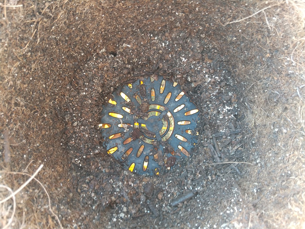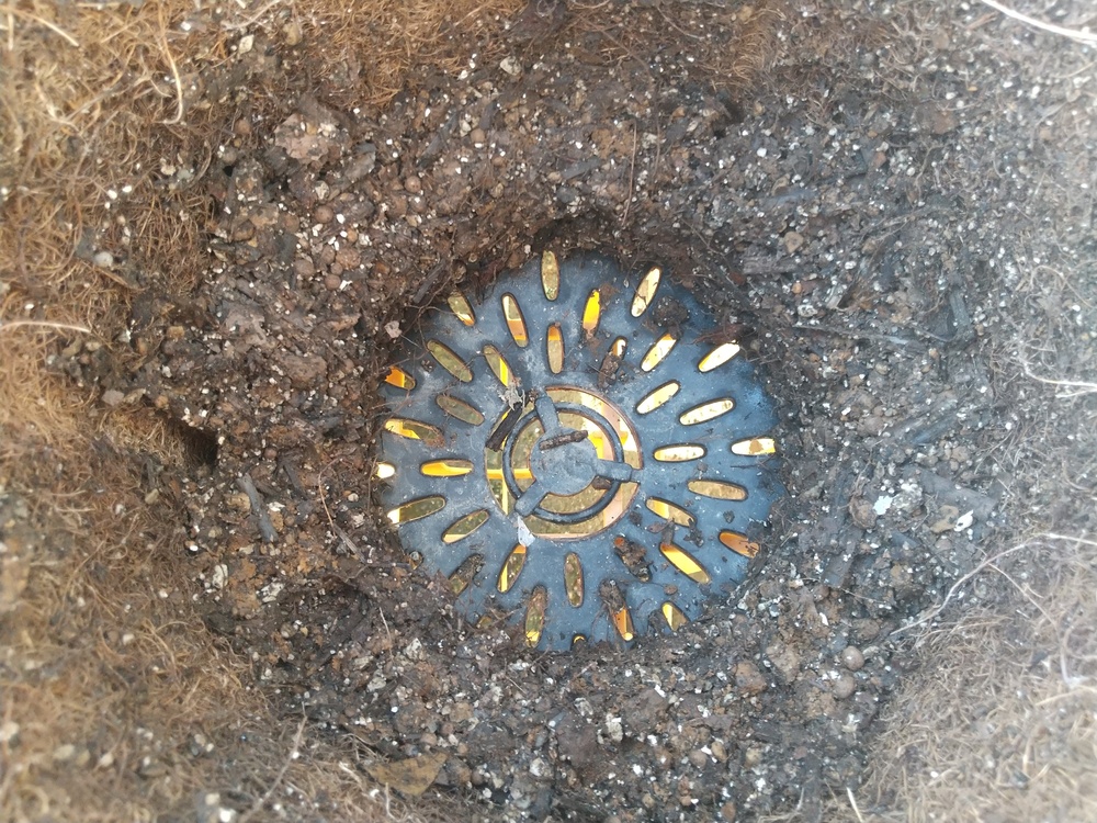 (3) 2枚の写真は別々な廃棄鉢。 細かい粒がネオカルオキソ。 土か固く締まって崩れません。 根が張っているわけでもないのに、、、