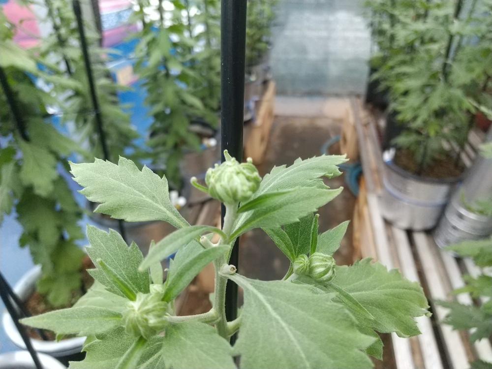 単鉢盆養出品候補の蕾です。定植するまでは厚物を出品するつもりでした。でも、厚物は切り花を含めて生育不良。今は管物にわずかな望みを、、、気持ちを切り替えないと世話なんてやってられない。今朝は念入りに消毒しました。あと1ヶ月、、、半身萎凋病や灰色カビ病だけは勘弁して欲しい。