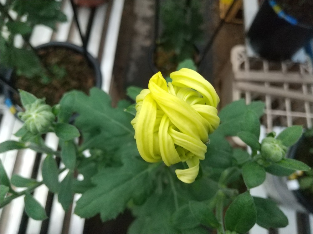 早く付けるとまだまだ花首が伸びて支柱も伸ばさなくてはいけなくなる。