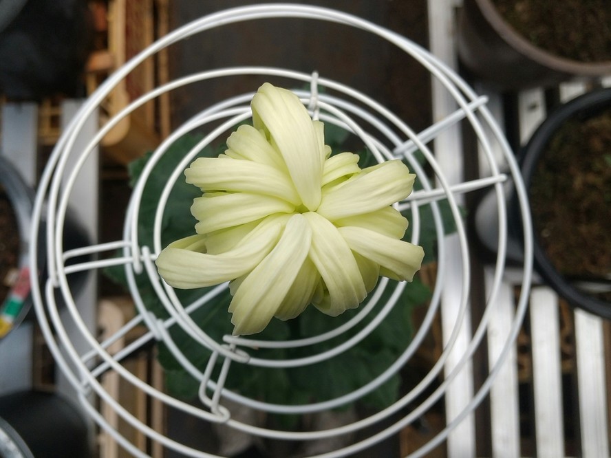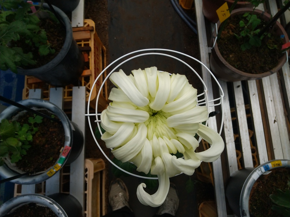 理想郷、先鋒、大日3回目です。昨日、大阪に送り出したら気が抜けてしまった。私の本分は切り花なのに。今年も厚物はダメ。残りは管物。管物では花直しの緊張感が味わえない。どこかで特別賞を取りたい。理由は表彰式に山ちゃんと参加したいからです。車中での菊談義が楽しい。