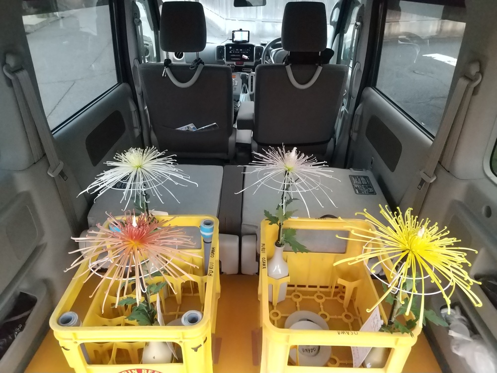 今日は福井県菊花大会が行われます。私も事務手伝いとして参加したかったのですがどうしても仕事が休めません。会場を盛り上げるために出品して欲しいと事務局長から頼まれました。昨夜から花を切って準備しました。今から(7時)会場に持参してから仕事にむかいます。