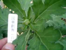 蕾の選定と、全ての鉢にウルトラキング500倍で灌水しました。下記のようにタグで三本仕立ての蕾をアップしたのですが、うまくできませんでした。サンプルをコピーしてやったのですが・・・・・これも未熟です。盆養(3本仕立て)の蕾です(9月27朝 現在)国華創雲