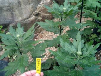 (1) 3本仕立て盆養 蕾の状態 竜宮姫(一文字) 蕾が大きくなってきました
