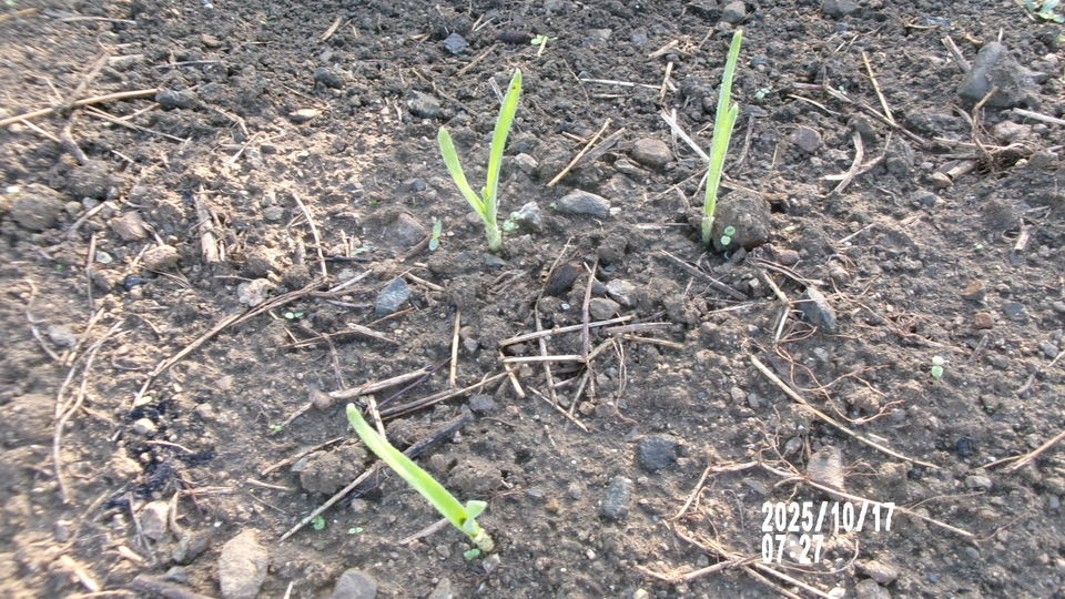 (2) ニンニクが5本しか芽がでない どうなってんのかな?