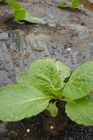 ・白菜“黄ごころ85”の定植し、ブロッコリー2種の畝にかけてあった防虫シートをかけて虫対策。大きくなったブロッコリーたちはこの後、青虫対策が待っている(≧〜≦)割り箸で…。